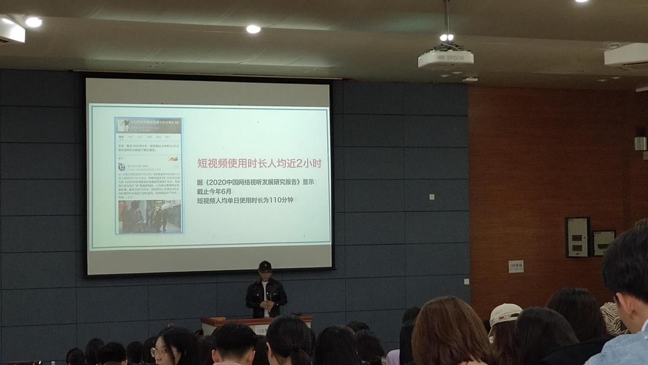 2020年11月2日下午两点半,一场主题为“短视频如何创作”的交流会在我校C报告厅开展,讲座由广播电视编导及播音与主持艺术两个专业联合举办,两个专业大一到大三的同学皆到场聆听。张俊涛作为国内知名的MCN机构洋葱视频的内容创作导师,以当今媒体融合、发展转型的趋势为切入点,呼吁同学们积极投入到自媒体内容创作中。
