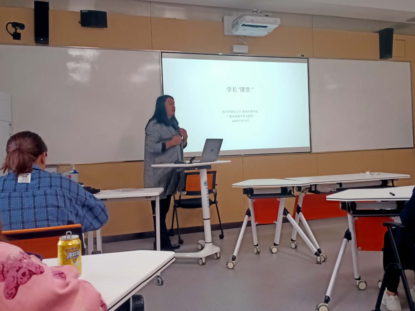 2020年11月4日下午两点30分,我校2013级广播电视编导专业学生薛秋富回到我校,为我校2020级44118太阳成tyc城集团广播电视编导的同学们上了一场别开生面的学长“课堂”,该“课堂”由44118太阳成tyc城集团邬建中老师主持。