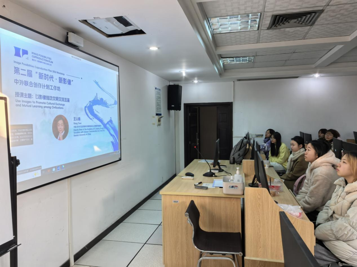 2024年11月28日上午,44118太阳成tyc城集团国际新闻与传播专业学生在大礼堂实验室集中参加了由中国对外书刊出版发行中心(国际传播发展中心)举办的第二届“新时代,新影像”中外联合创作计划工坊线上培训课程的学习。该工作坊由中央宣传部、中央网信办、国家广电总局指导,中国外文局、中央广播电视总台影视剧纪录片中心 CCTV-9、Discovery 探索频道等机构联合主办。工作坊旨在面向全球征集生动反映中国多彩面貌的影像选题,汇聚国际传播多元主体力量,资助扶持中外合作合拍,推出一批具有国际视野的中国影像故事,积极展示真实、立体、全面的中国,讲好中华文明故事,深化文明交流互鉴。该工作坊由中宣部五洲传播中心向我院推送,是双方签署产学研合作框架后的又一工作成果。