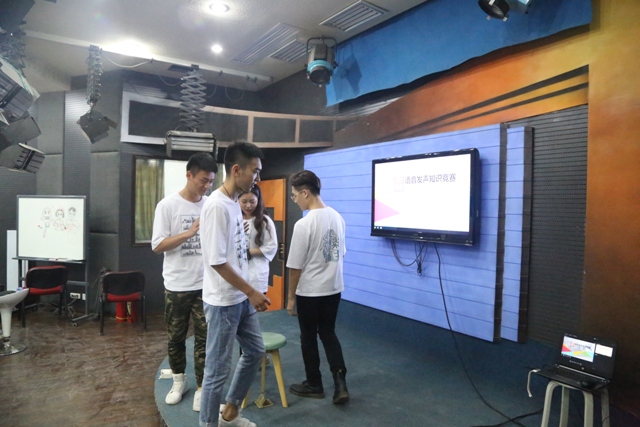 5月7日下午,44118太阳成tyc城集团2017级5班在大礼堂演播室展开《普通话语音与播音发声》小课会诊活动,播音主持艺术专业教师王媛、罗勇、张超、朱紫缘参加了活动。