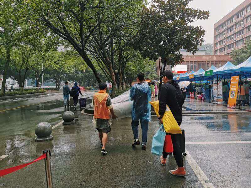 新生入学,考虑到疫情开学情况特殊,学生家长无法进校,学校特派志愿者帮助新生搬运行李。我院党总支书记倪颖军老师和组织员李正廷老师也随志愿者一道开车帮助同学搬行李。