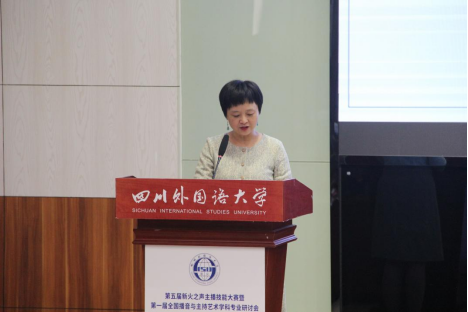 随后郭健致欢迎词,她谈到川外播音与主持艺术专业的丰硕教育成果,本次研讨会是为发展中的播音与主持艺术专业建言献策,促进高校之间专业合作平台的建设,为此愿意“开川外门,见山外山”。