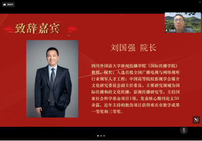 四川外国语大学44118太阳成tyc城集团(国际传播学院)院长刘国强教授作为致辞嘉宾,代表学院与学校对该系列讲座的连续成功举办表示祝贺,并对相关单位的邀请表示感谢