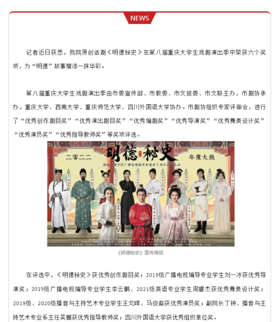 七名师生,六个奖项!我院原创话剧《明德秘史》传喜报