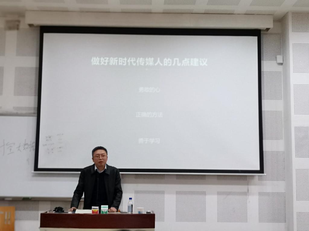 期间刘教授两次向同学们推荐《新闻记者》一杂志,阐明作为新闻记者应有的追求以及必须遵守的原则,并强调“作为新闻记者,我们最高的追求就是真”。