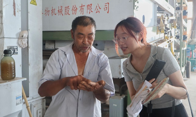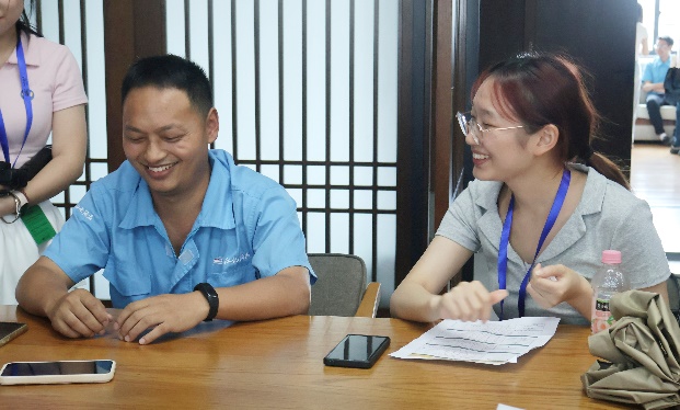 中午,成品包装车间、201手工精酿车间、白酒勾贮车间的工人受邀来到办公区,同学们分为2-3人一组,先后对15位包装车间女工、17位酿酒师、13位调剂师三个群体分别展开了三轮采访。