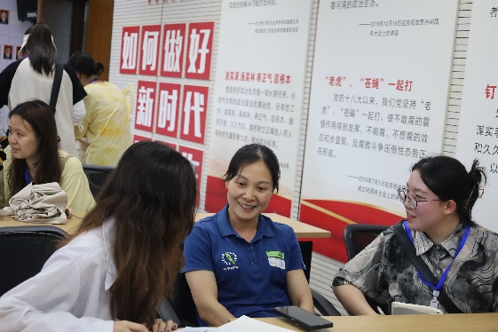 与一线人员开心交谈  付小雪