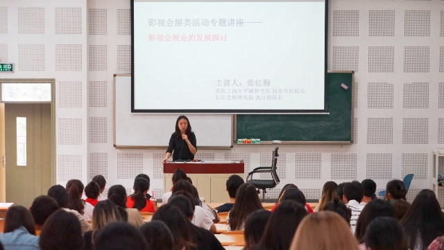 5月8日下午,由重庆工商大学融智学院商务学院院长、长江会展研究院执行副院长张红梅女士主讲的 “影视会展业类活动”的专题讲座,在我校教学楼B2-2举行,我院广播电视编导系15、16、17级学生到场聆听了此次讲座。