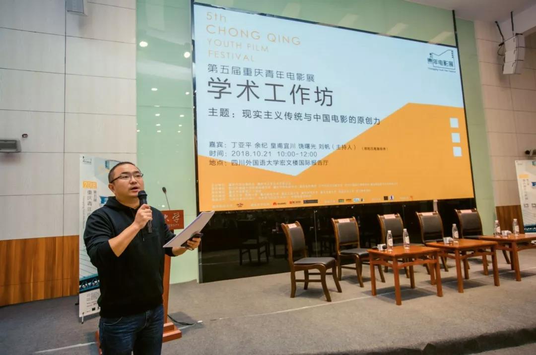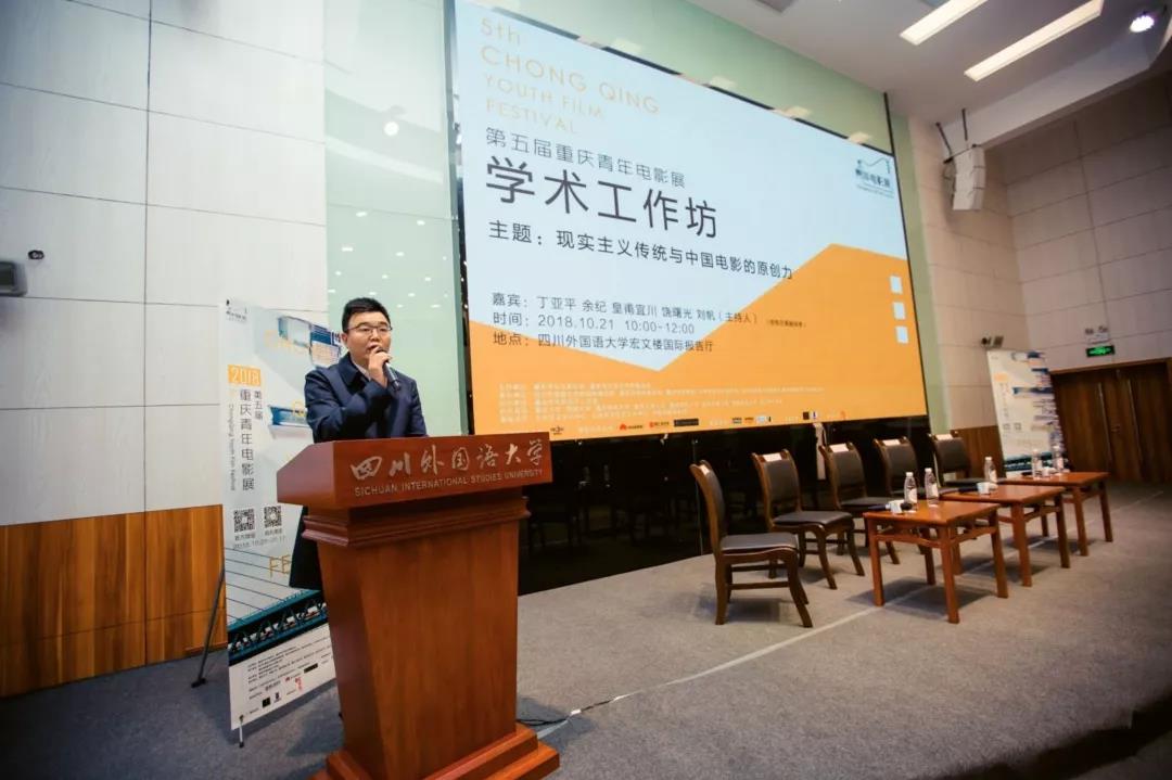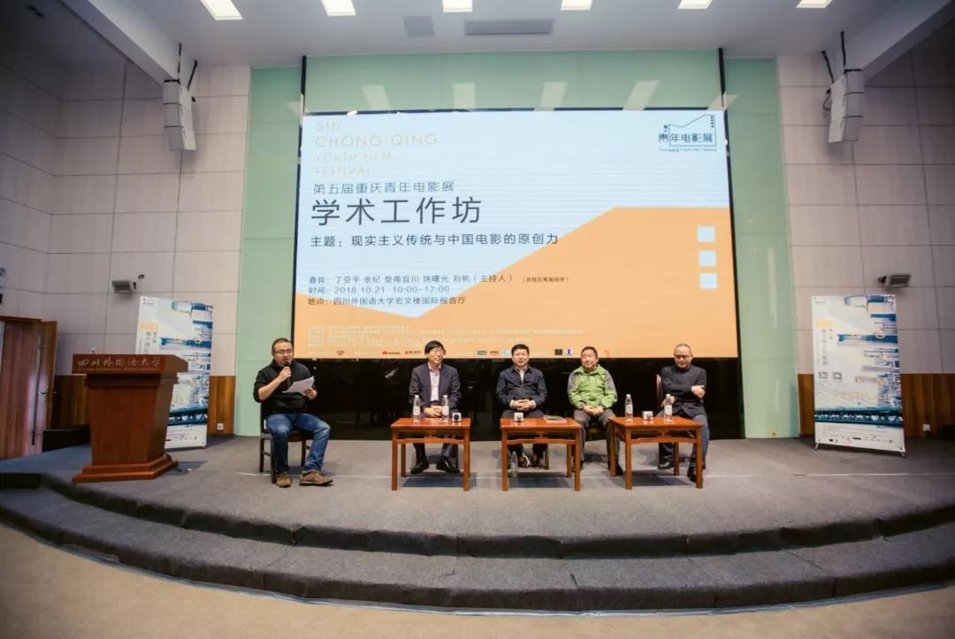 10月21日上午10点,第五届重庆青年电影展“学术工作坊”于四川外国语大学宏文楼国际报告厅成功举办。本届的“学术工作坊”,以“现实主义传统与中国电影的原创力”为主题,邀请到了中国艺术研究院电影电视艺术研究所所长、研究员、博士生导师丁亚平,电影导演、西南大学文学院教授、博士生导师余纪,中国电影艺术研究中心研究员、《当代电影》杂志主编皇甫宜川,中国电影家协会秘书长、研究员(二级教授)、博士生导师饶曙光,中国电影家协会副主席、西南大学文学院影视系主任刘帆等五位重量级嘉宾来到现场,发表真知灼见。