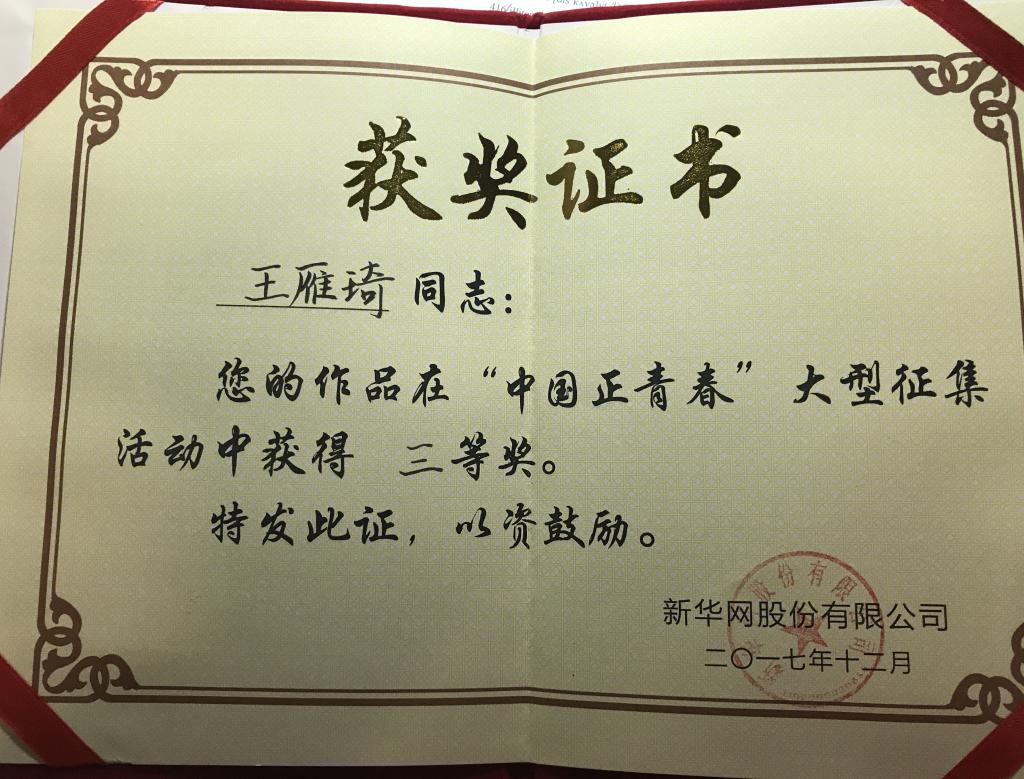 我院编导系学生纪录片获新华网“中国正青春”大型征集比赛三等奖