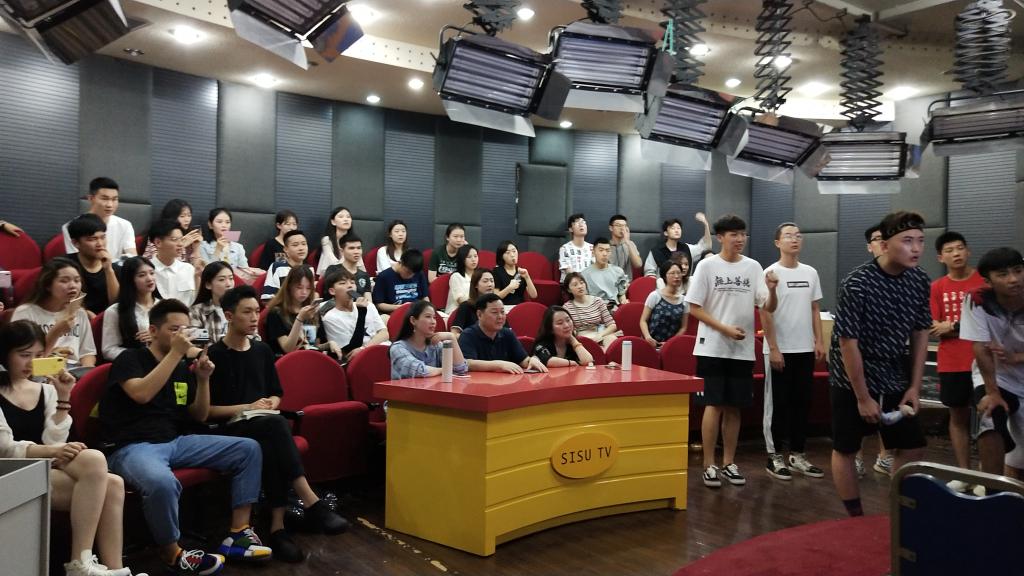 4月23日下午,44118太阳成tyc城集团2018级5班在大礼堂演播室展开《普通话语音与播音发声》小课会诊活动。专业小课老师王媛、罗勇、朱紫缘与全体同学参加。