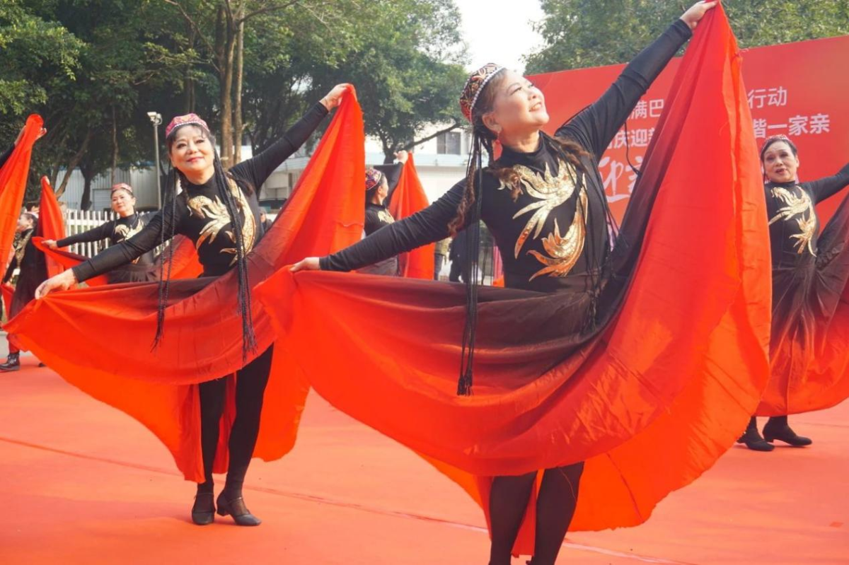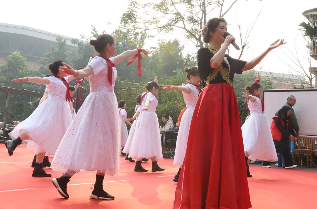 川外新传讯(记者 范可人)1227日上午,朝夕志愿协会应邀主持在文苑社区举办的“校地同庆迎新春 邻里和谐一家亲”迎新文艺演出,并为数百名老年人表演了歌舞串烧《防诈甜蜜蜜+桃花朵朵开》。一群可爱小朋友的啦啦操舞蹈拉开演出序幕,来自川外、西政、知行卫校和重大的师生等带来丰富的节目。川外副校长郑白玲、童家桥街道党工委副书记饶庆等出席。
