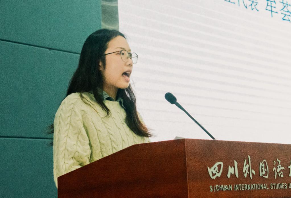 2020级4班的徐佳佳作为新生代表上台发言。她分享未来四年对自己的规划和期望:制定学习计划,充实大学生活;树立规则意识,提升自控能力;常怀感恩之心,争做有用之人。最后,她祝愿大家在川外新传度过丰富的四年生活,踏实走好脚下的路。以不懈奋斗擦亮青春底色、叩响未来之门。