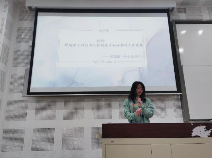 由廖金英老师主讲的关于西方科学起源的导读会在11月5日上午十点,于歌乐楼A1-2教室举行。廖老师先邀请了骆凤同学上台分享了关于吴国盛先生《什么是科学》的读书心得。骆凤同学表示:“是中西方文化的差异造成了科学越来越难理解;科学不等于科技,也不等于一切民族都拥有的智力现象,而是一种起源于对自由人性追求和涵养的文化现象。”随后,廖老师则为大家讲解了求真的态度是科学精神的灵魂,同时也是科学素养的内涵之一;也解释了启蒙不等于启蒙运动,最彻底的怀疑是认识之父,启蒙必须自己完成。参与本场导读会的陈思媛同学在会后说道:“这堂导读会让我认识到真正的科学是求真,学习科学是需要方法的,需要掌握像思维、精神这种最‘无用’的知识,来让科学合乎逻辑,因为‘无用’便是大用。”