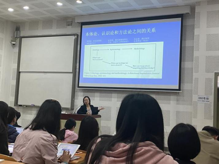 11月2日下午两点半,由廖梦夏老师主讲的第一场导读会在歌乐楼B2-1教室开展。廖老师以《走进方法的世界》为主题,通过两个视频向同学们说明了“利用大数据增强说服力”和“查阅资料以提高可信度”两种分析方法,后以“第一、第二、第三世界”为切入点向大家引入了本体论概念。同时廖老师讲道:“认识论是关于知识的理论。知识是我们学习阶段要去学习的一切理论,其中因果关系是最重要的理论,目的是去认识世界的本质,完善本体论。而理论是通过方法来认识的。”廖老师通过短短几句话点明了本体论、认识论和方法论之间的关系,使同学们理解了“用科学的方法成为你与世界对话的工具”的中心结论。